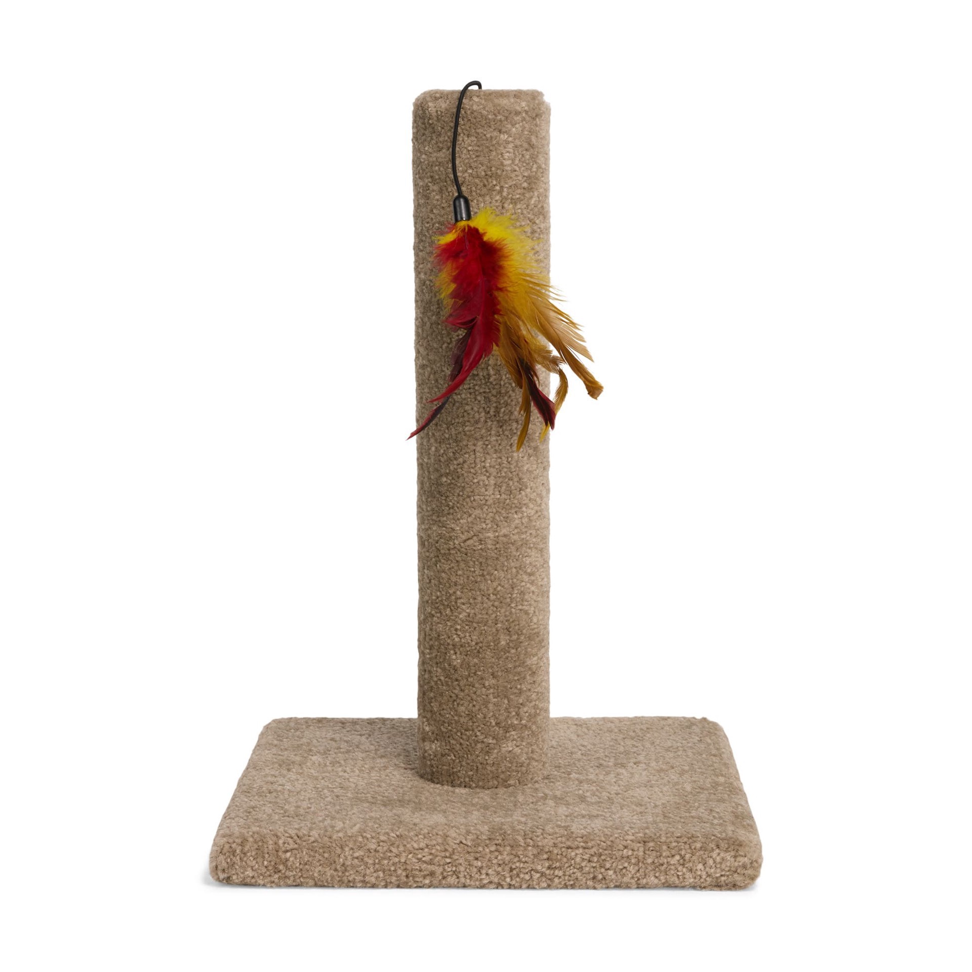 EveryYay Carpeted Cat Scratch Post with Feather Toy, 17.5" H