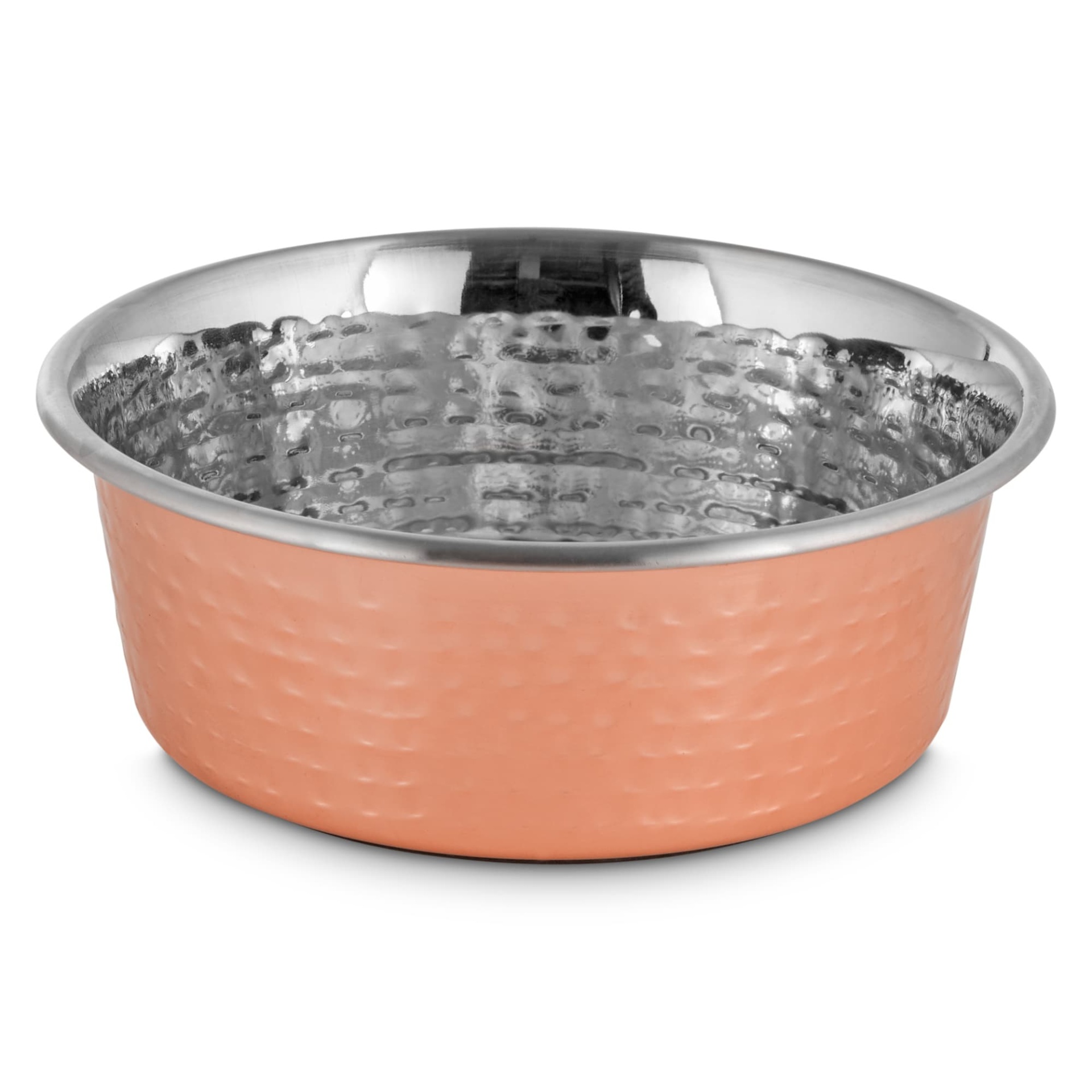 The EveryYay CopperPlated and Hammered StainlessSteel Dog Bowl features a trendy look in a smart design. Your pup will enjoy how its noslip bottom helps keep it in place as they dig into their meal, w…