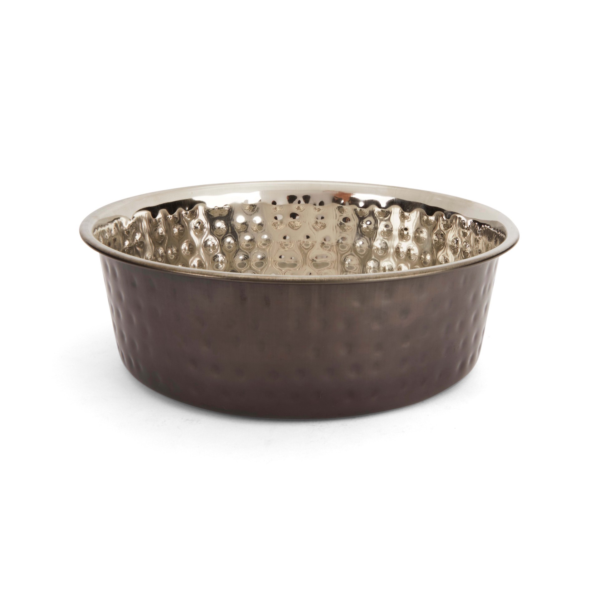 EveryYay Dining In Hammered Black Stainless-Steel Dog Bowl, 7 Cups