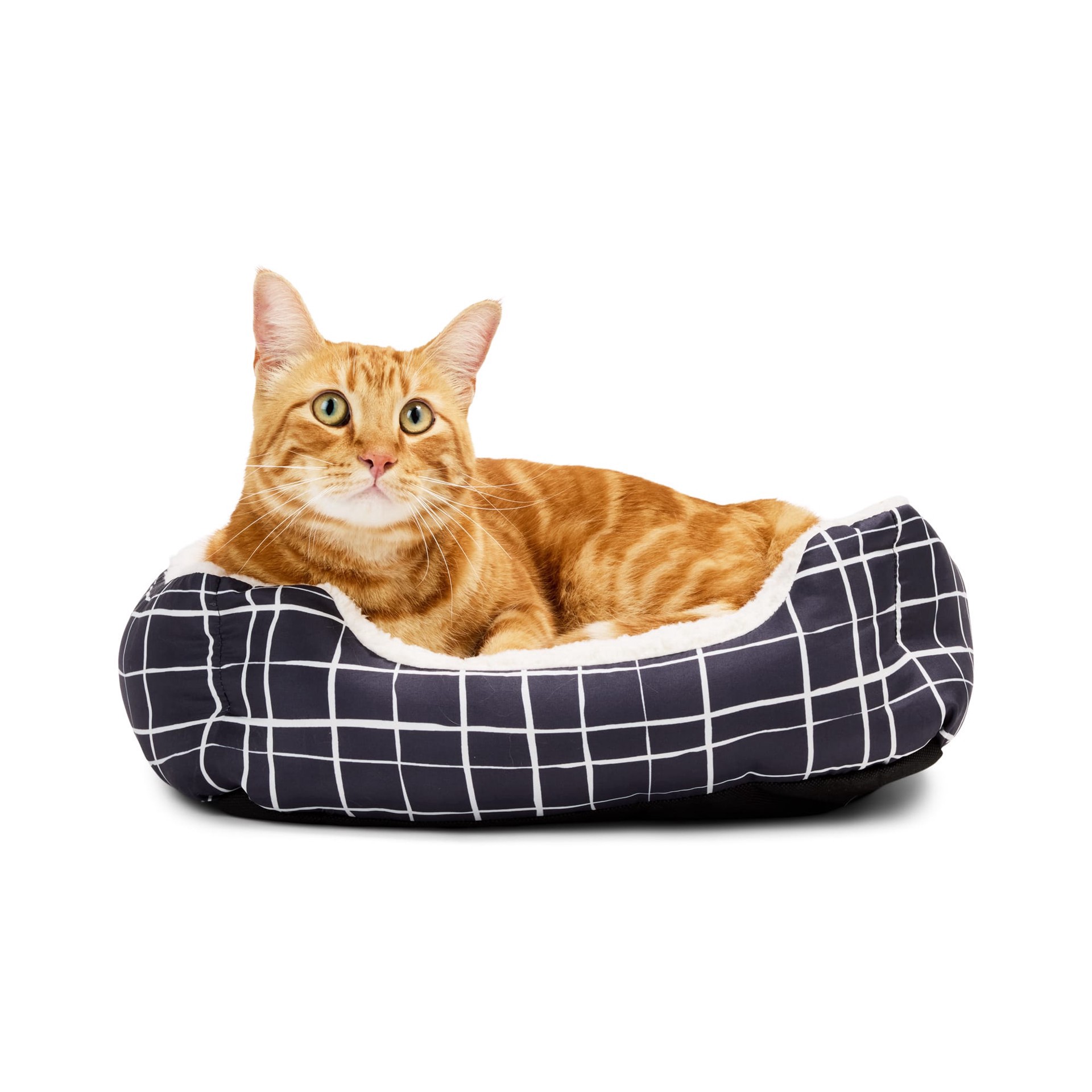 EveryYay Essentials Step In Nester Cat Bed, 18" L X 15" W X 5" H, Small, Grey Windowpane Plaid
