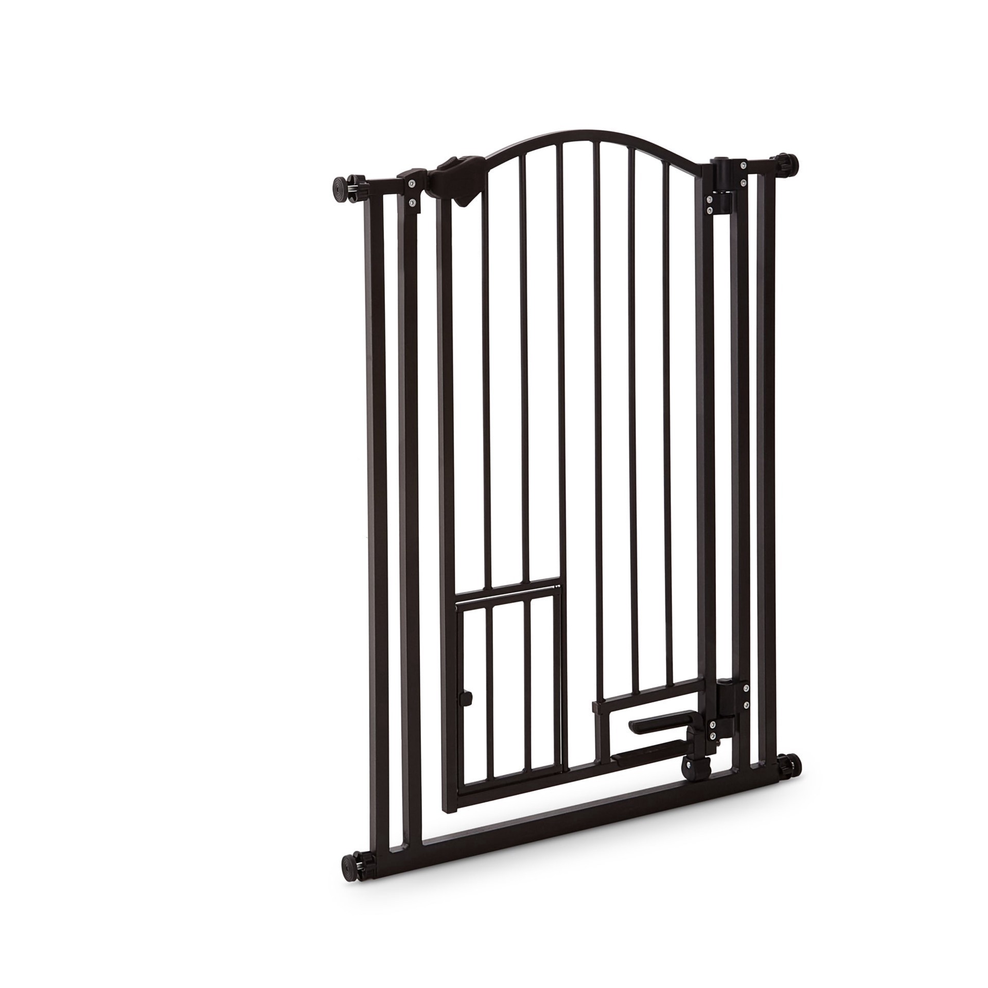 In The Zone Extra-Tall Arched Walk-Through Pet Gate from EveryYay. Fits wide openings 29-in to 43.5-in wide. 6.5-in x 10.25-in door gives cats and small dogs freedom to pass through. Multi-latching ha…