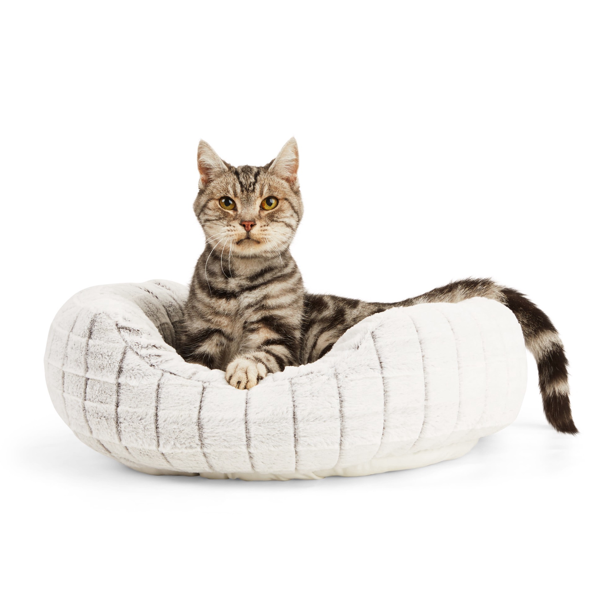 The EveryYay Snooze Fest Faux Fur Cat Bed has an irresistibly soft exterior and cushiony sleep surface. Decorative stitching provides a textured and stylish pattern to this comfortable bed for cats.
