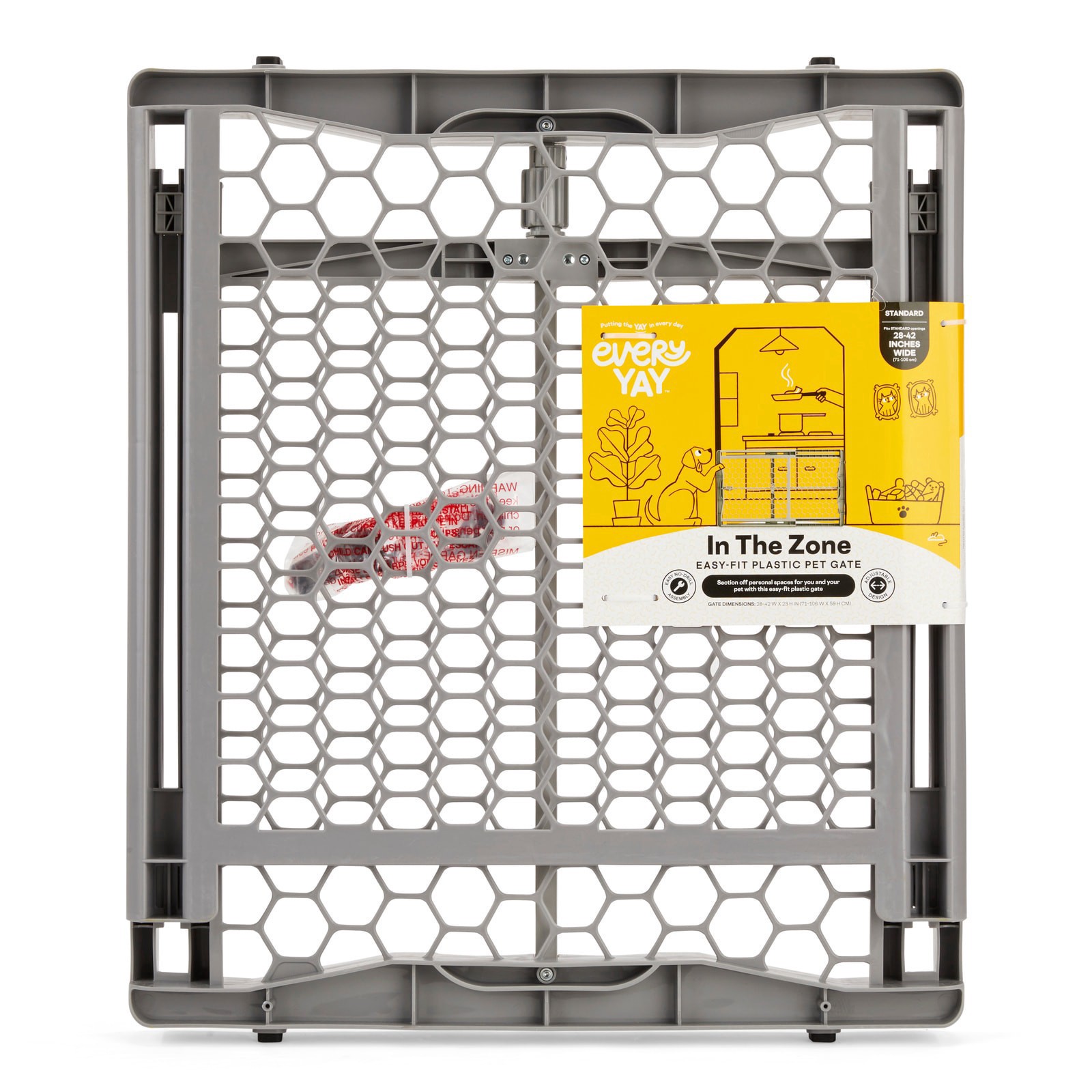 In The Zone Easy-Fit Plastic Pet Gate from EveryYay. Sections off pet-friendly areas. Fits standard openings up to 42-in wide. Patented Surefit locking system creates an adjustable and snug fit. Press…