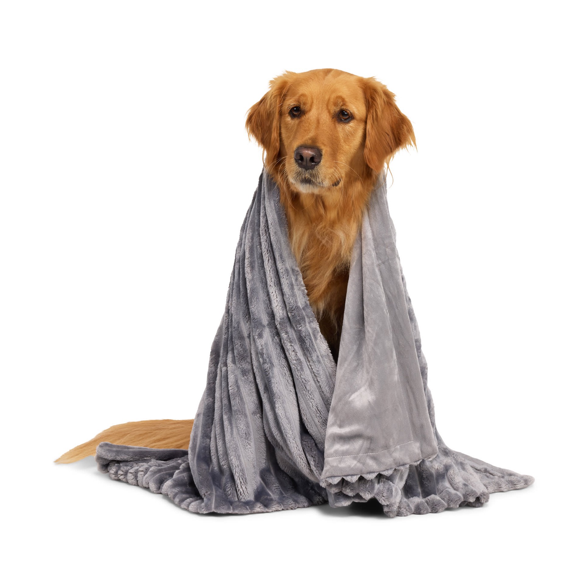 EveryYay Ribbed Plush Pet Throw for Dogs, 40" L X 50" W, Grey