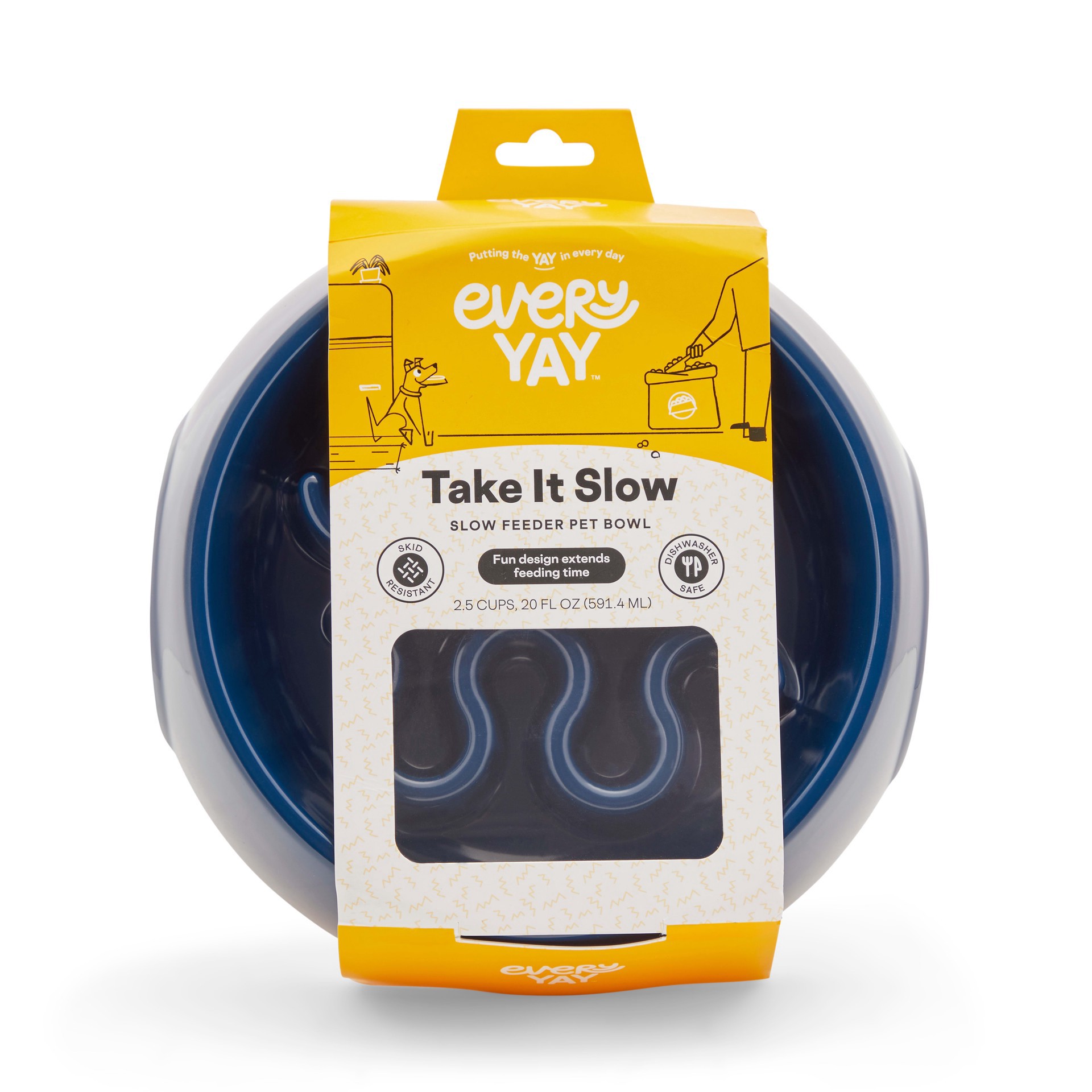 EveryYay Take it Slow Navy Plastic Slow Feeder Dog Bowl, Small