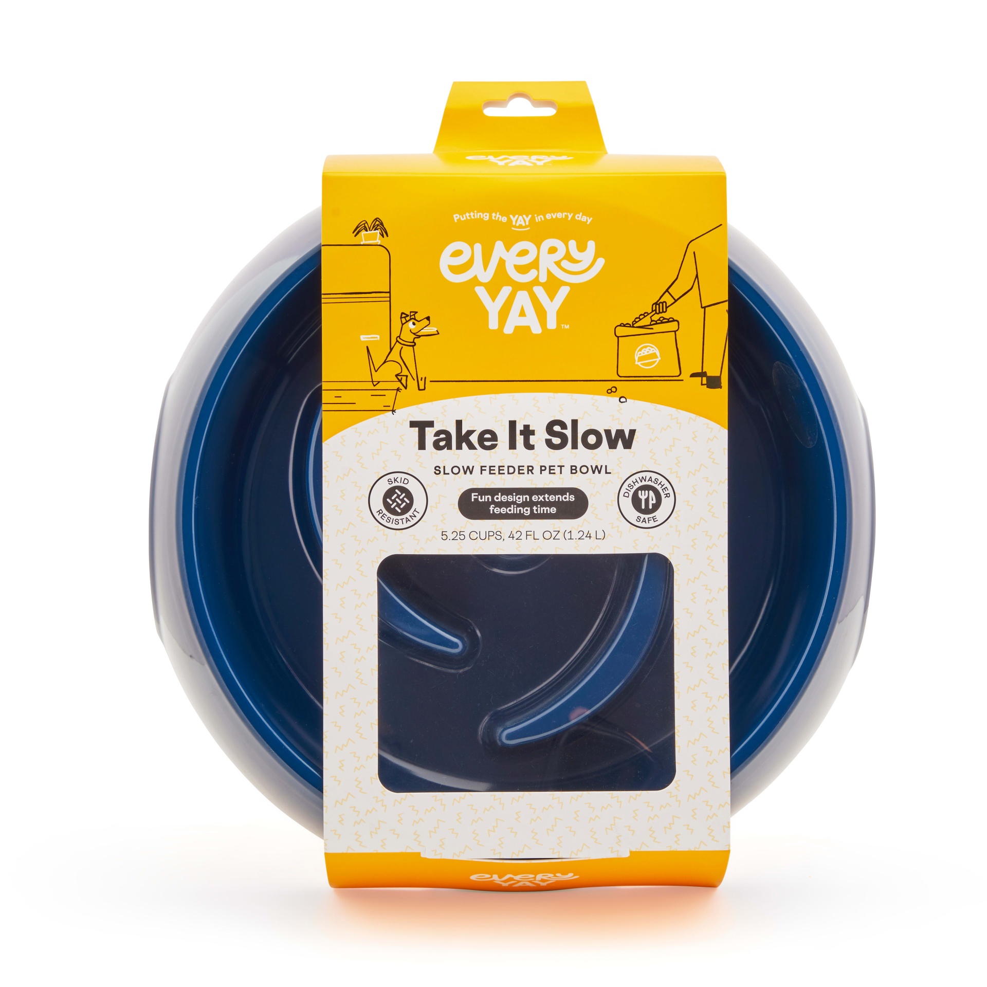 EveryYay Take it Slow Navy Plastic Slow Feeder Dog Bowl