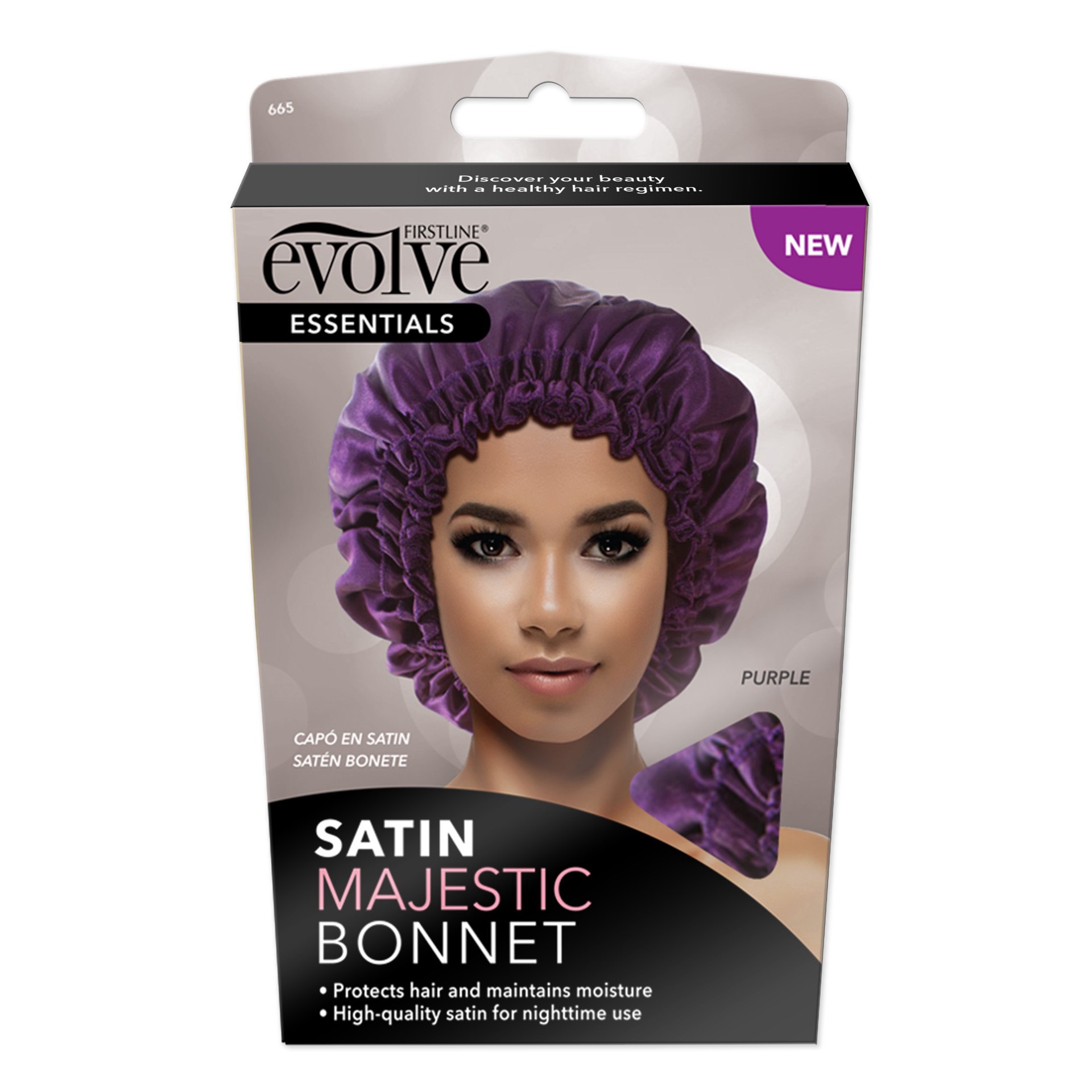 The Evolve Satin Majestic Bonnet is made with non-abrasive, high quality satin. Designed for nighttime use to prevent frizz and protect natural & relaxed styles, roller sets & braids. This bonnet allo…