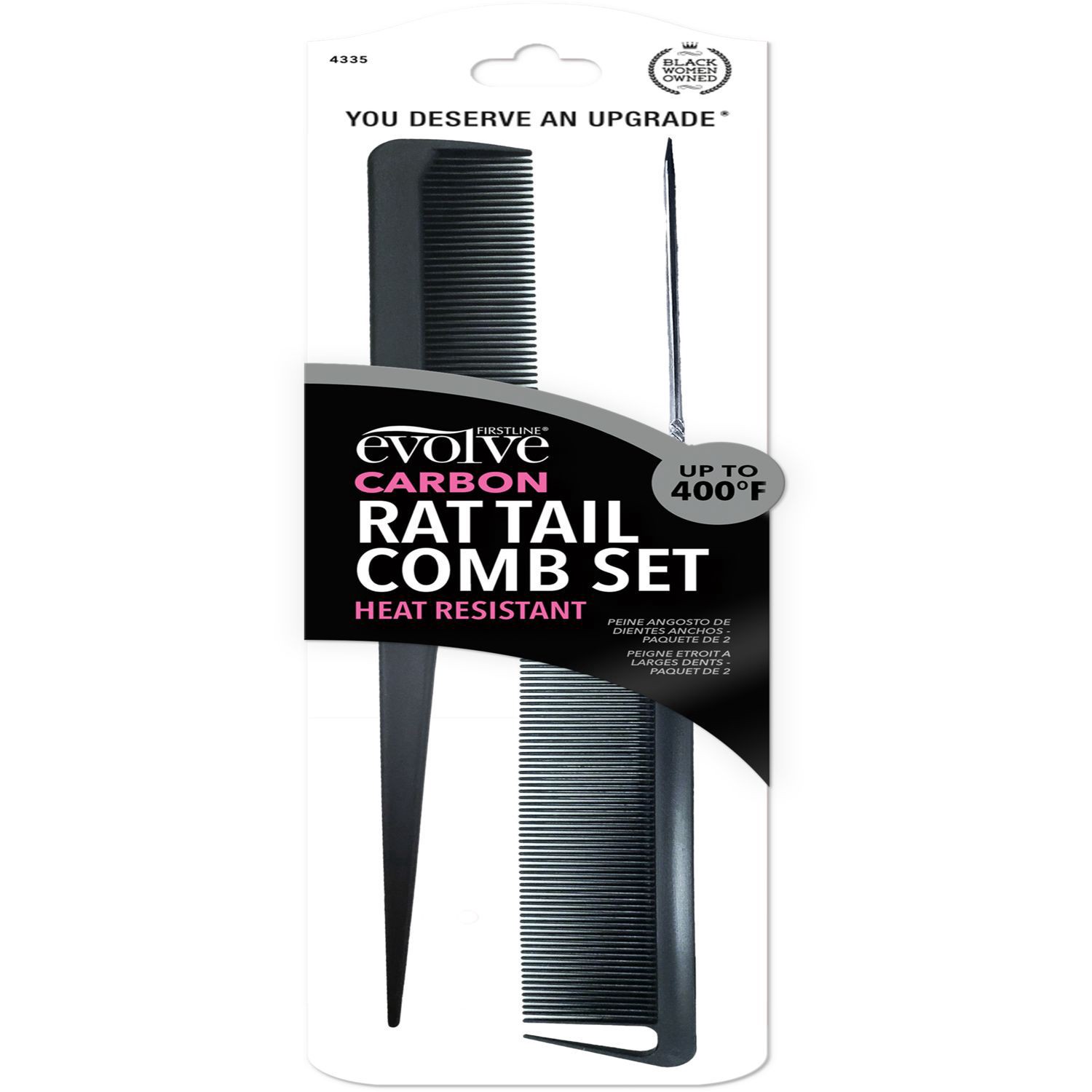 Evolve Heat Resistant Carbon Rat Tail Comb Set