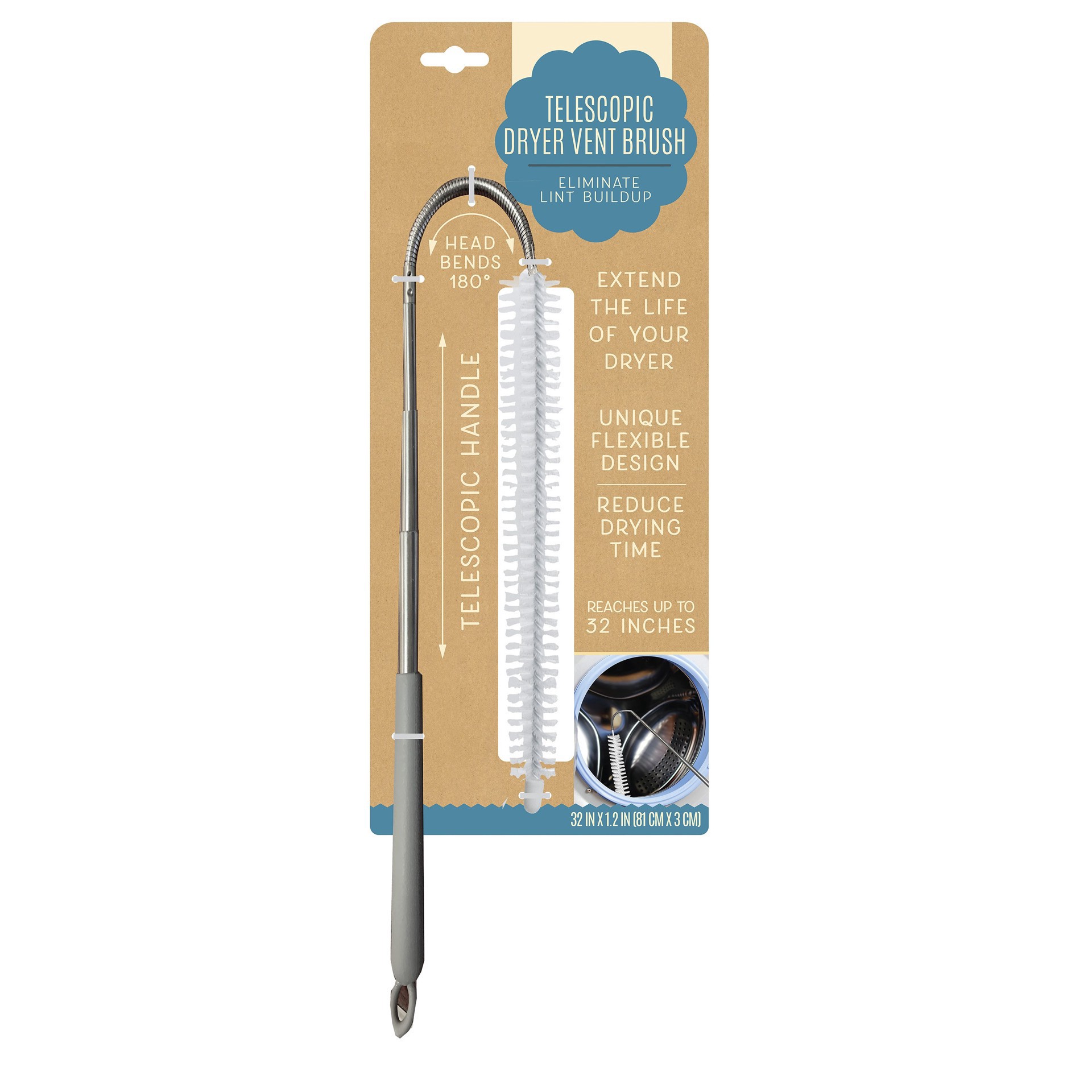 Extend the life of your dryer with this telescopic dryer vent brush that helps eliminate lint buildup. It has a unique flexible design, telescopic handle, and a head that bends 180 degrees. It can rea…