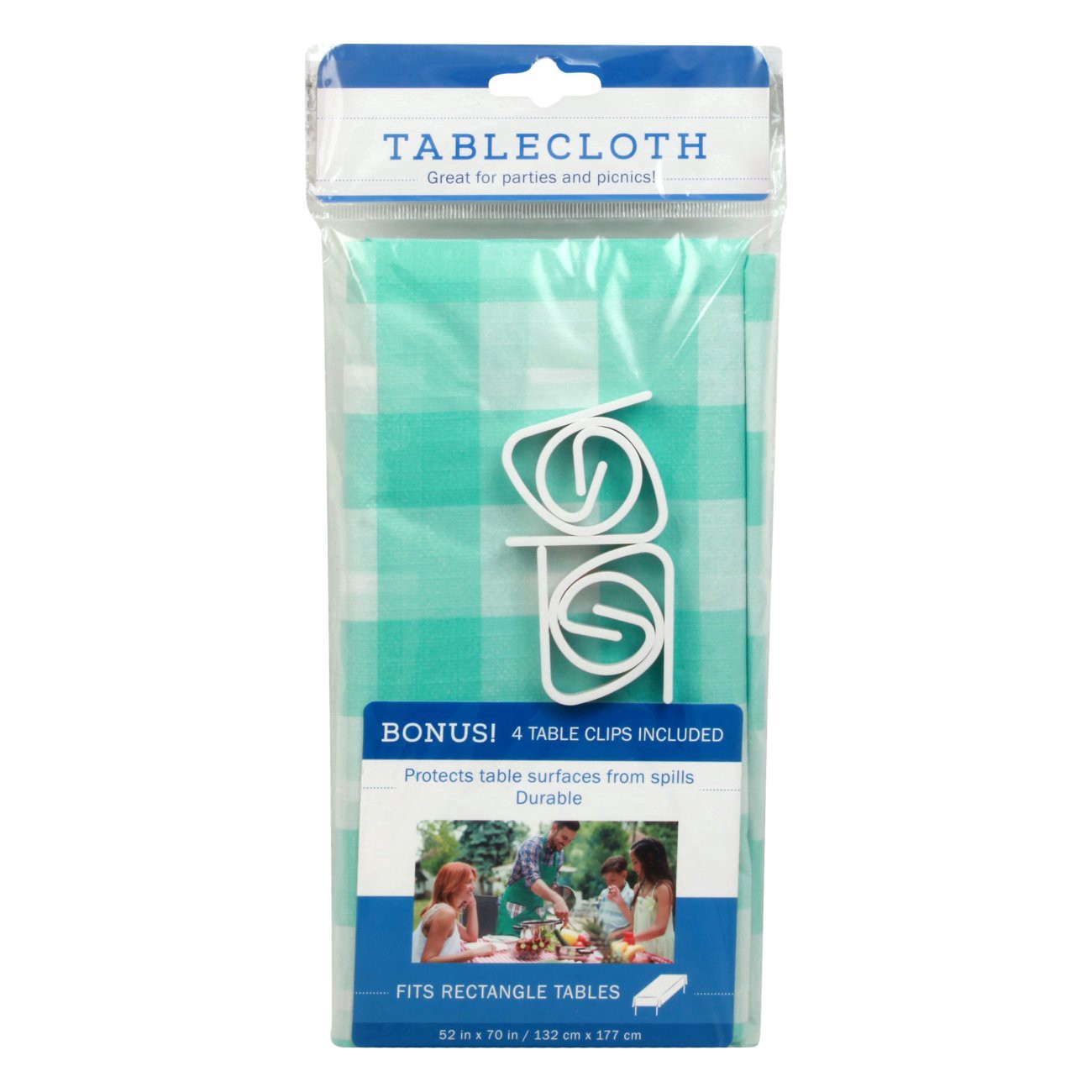 Great for using at outdoor parties, picnics, camping and more! Bonus: Includes 4 table clips.- Protects table surfaces from spills - Fits rectangle tables - Durable, reusable and easy to wipe clean Me…