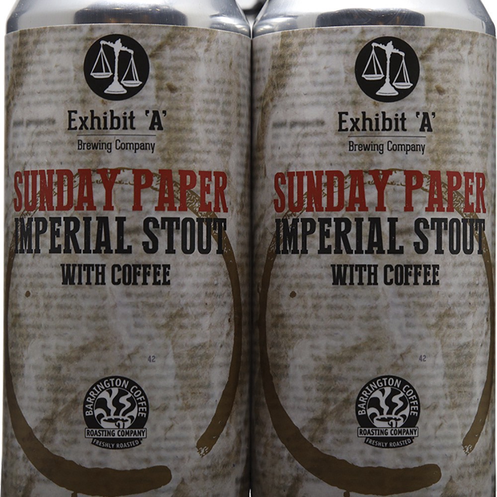 Exhibit 'A' Brewing Company Sunday Paper Imperial Stout With Coffee 4 Pack, Pint Cans
