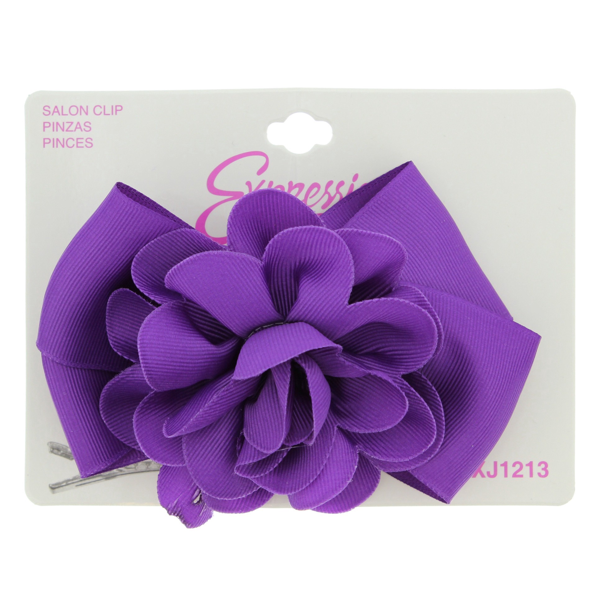 slide 1 of 1, Expressions Large Flower Design Purple Bow Salon Clip, 1 ct