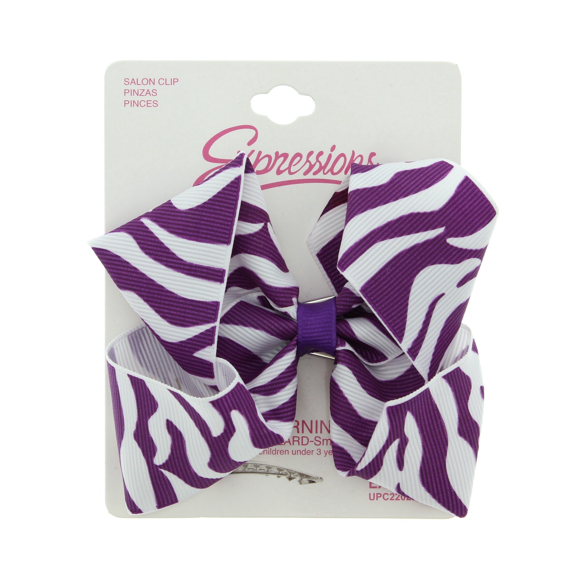 slide 1 of 1, Expressions Tiger Print Bow Purple, 1 ct