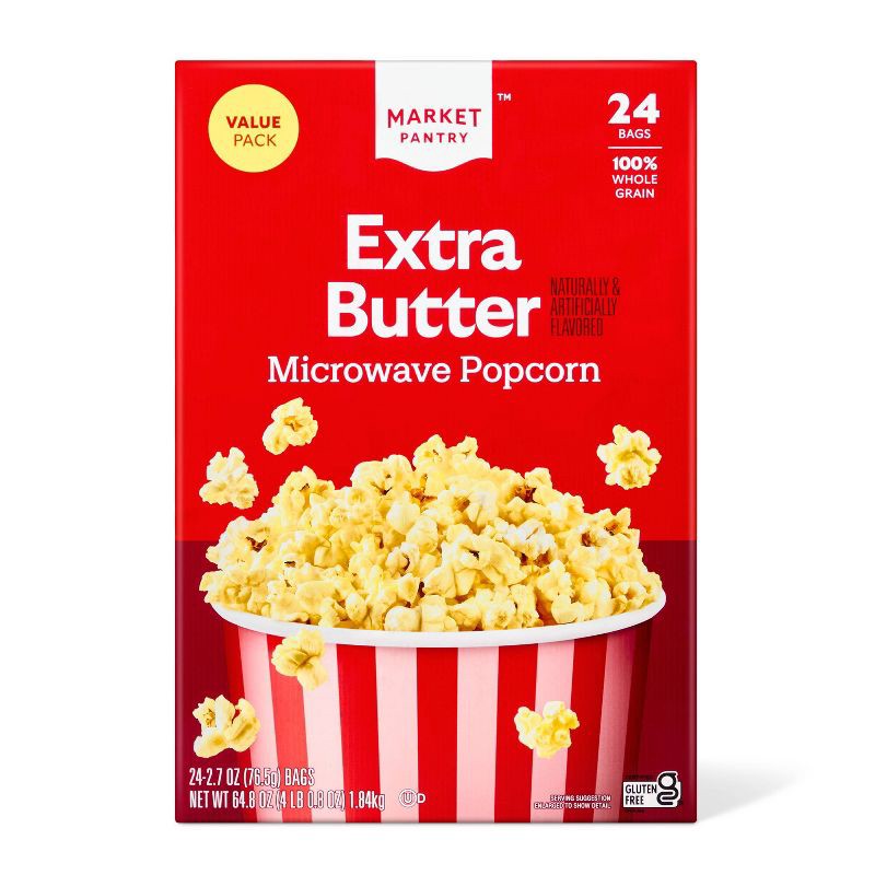 Relish the naturally and artficially flavor extra butter in each bite with the 24-Pack of naturally and artficially flavored Extra Butter Microwave Popcorn from market pantry™. Made with 100% whole gr…