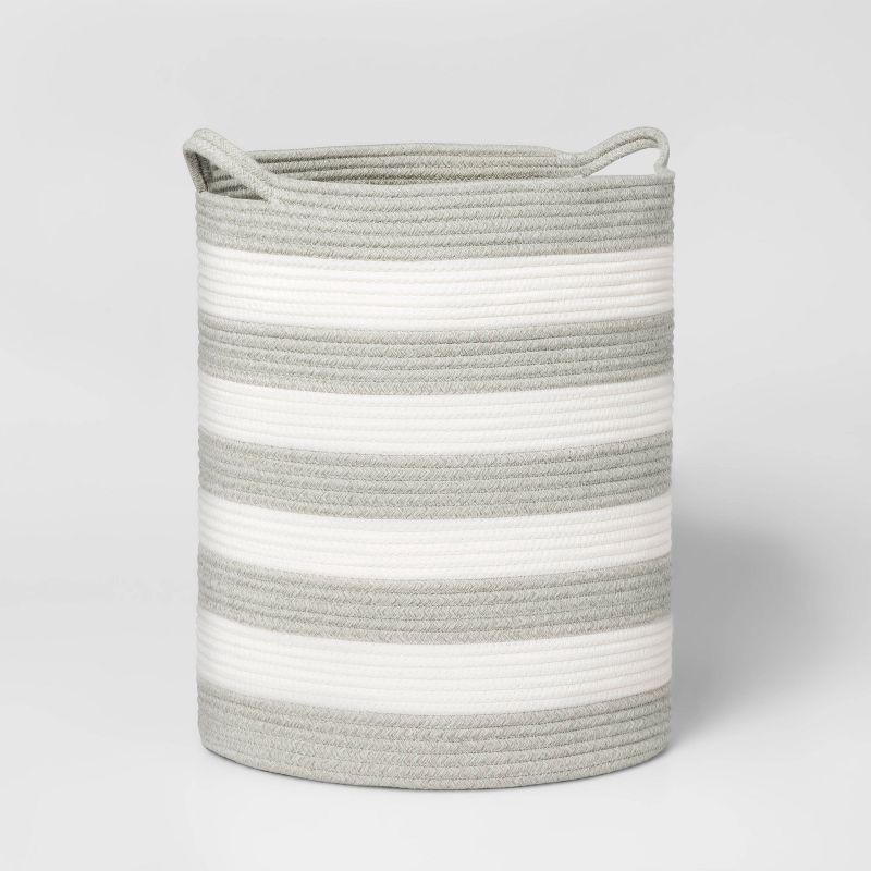 Extra Large Striped Coiled Kids' Rope Basket Gray - Pillowfort™