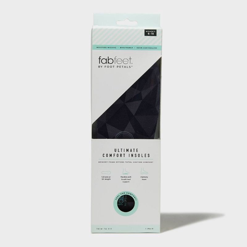 For a perfectly tailored fit from your favorite shoes, add the Fab Feet by Foot Petals Ultimate Comfort Insoles. These memory foam insoles give you a customized fit. The flexible arch and soft heel gi…