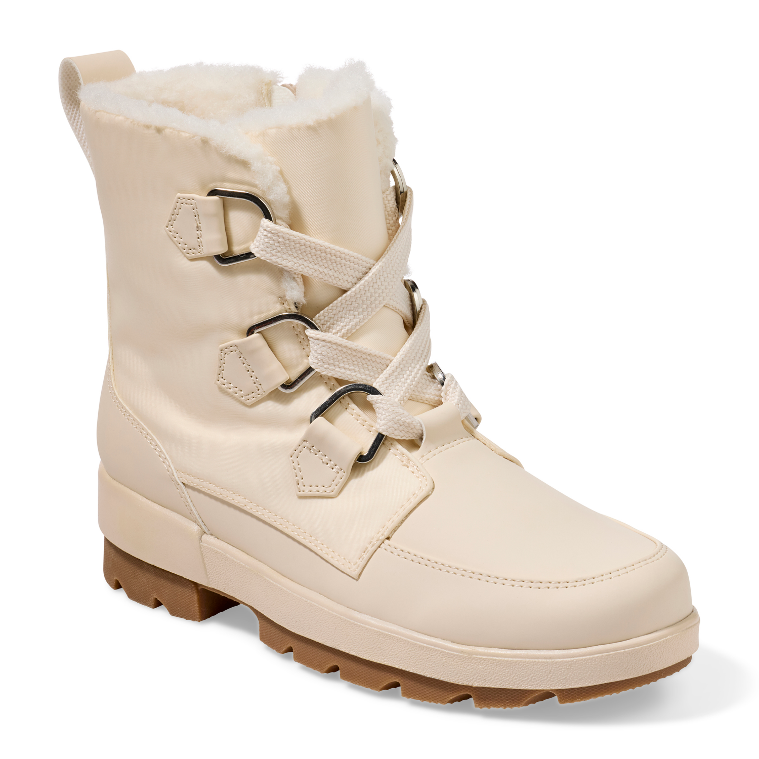 Stay cozy and stylish in the this hiker boot - the perfect blend of function and fashion. Featuring a faux shearling lining, secure D-ring laces, and a chunky lug sole, its perfect for cold-weather ou…