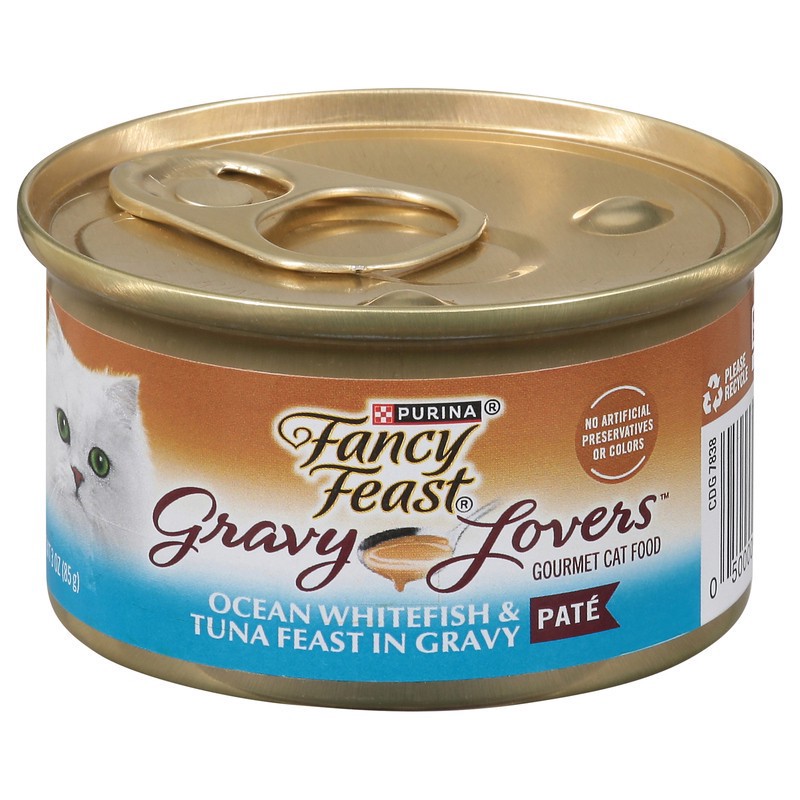 Calorie Content (Calculated) (ME): 884 kcal/kg, 75 kcal/can. Fancy Feast Gravy Lovers Ocean Whitefish and Tuna Feast Pate in Gravy is formulated to meet the nutritional levels established by the AAFCO…