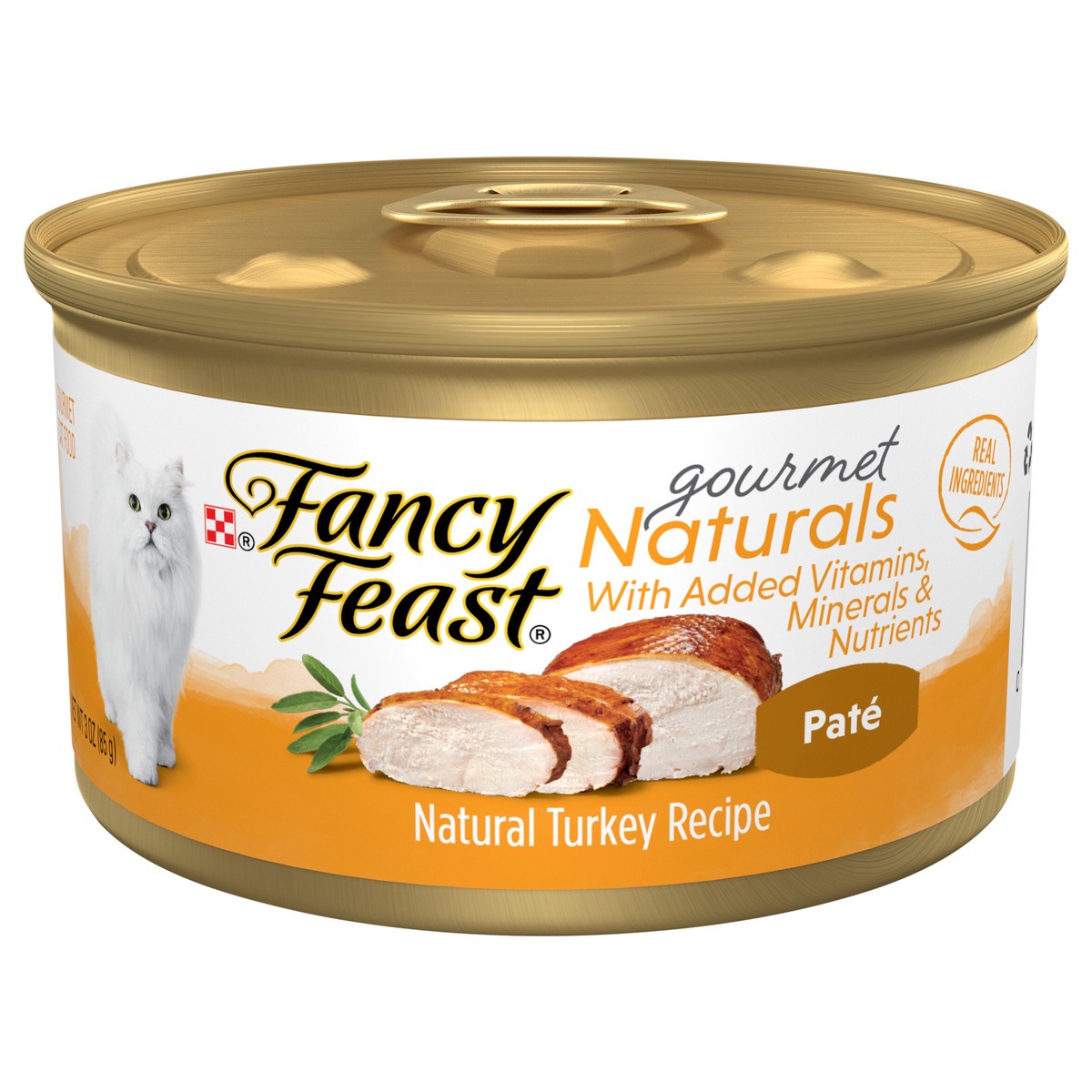 Calorie Content (Calculated) (ME): 1158 kcal/kg\, 98 kcal/can. Fancy Feast Gourmet Naturals Turkey Recipe is formulated to meet the nutritional levels established by the AAFCO Cat Food Nutrient Profil…