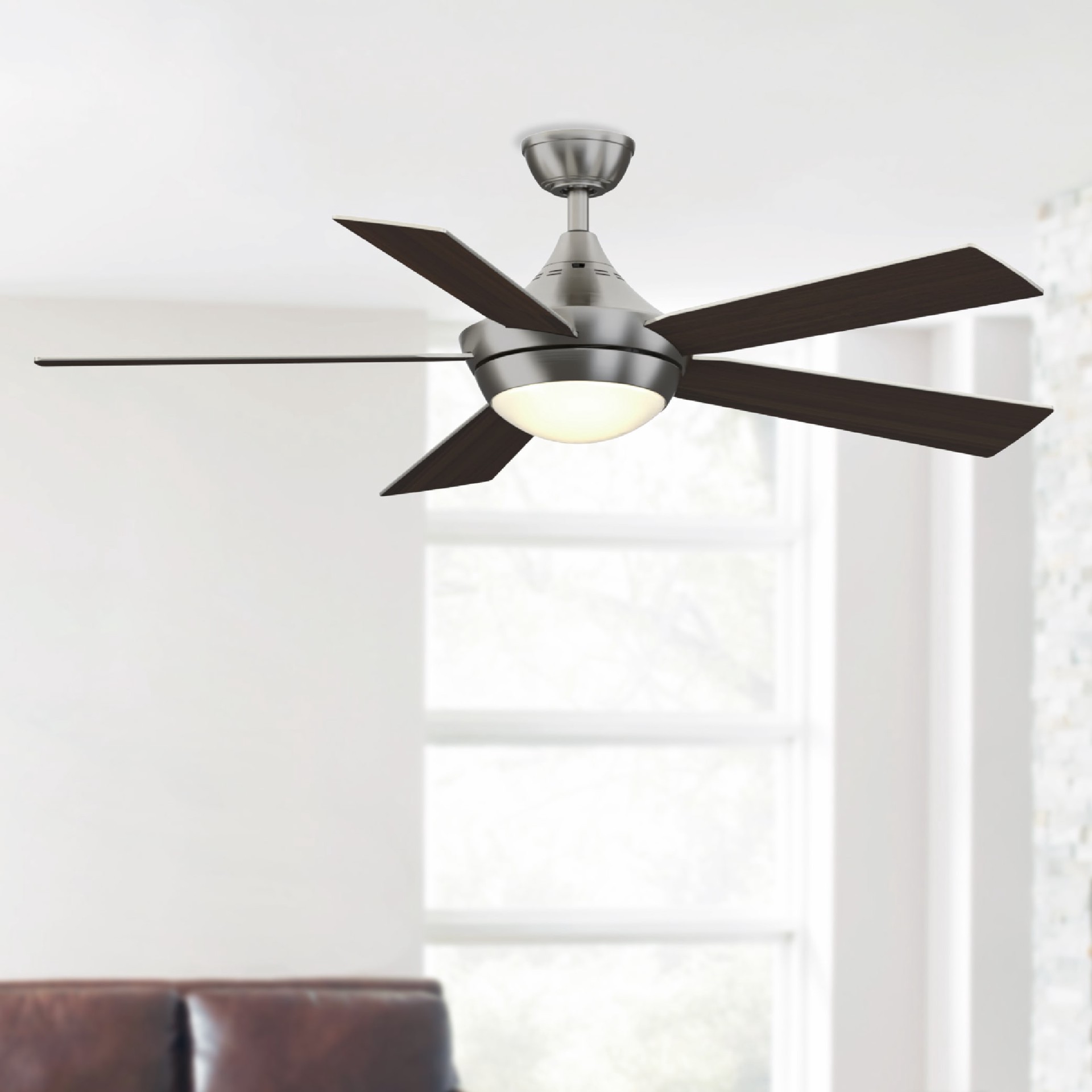 Fanimation Studio Collection Aire Drop 52-in Brushed Nickel with Dark Walnut/Gray Blades LED Ceiling Fan With Light and Remote Control Included 5 -Blade