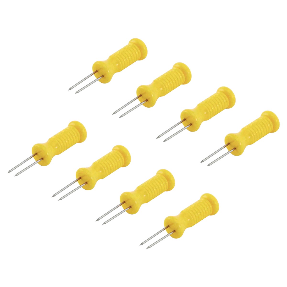 Set of 8. Dishwasher safe. Stainless steel prongs. Protect fingers from hot corn, Lifetime limited warranty. BPA free. Please recycle. Made in China.
