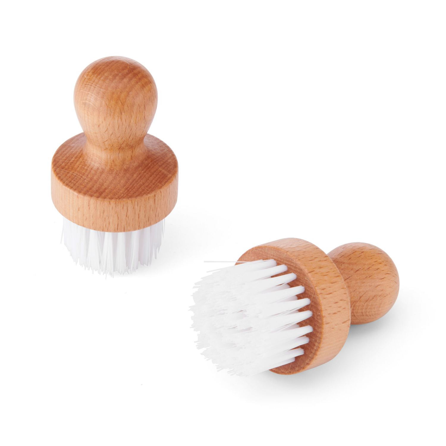 This Farberware Set of 2 allnatural durable Beechwood Vegetable Brushes is ideal for cleaning all types of fruits and vegetables. The brushes feature comfortable grip handles and soft nylon bristles h…