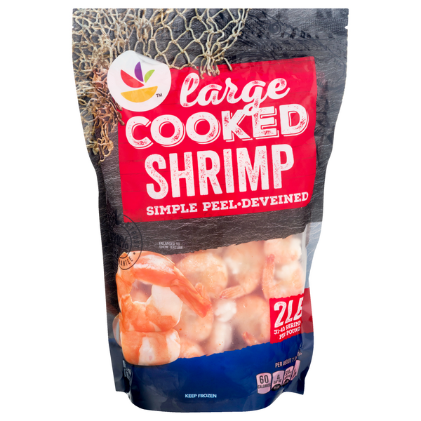slide 1 of 1, Farm Raised Cooked EZ-Peel Deveined Large Shrimp 31-40 ct per lb Frozen, 40 ct; 2 lb