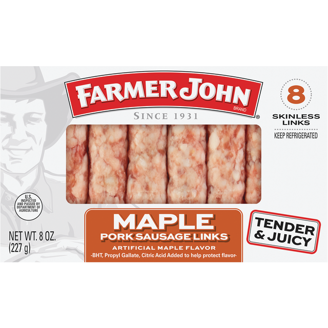 Farmer John Maple Pork Sausage Links 8 ea, JUL Dated