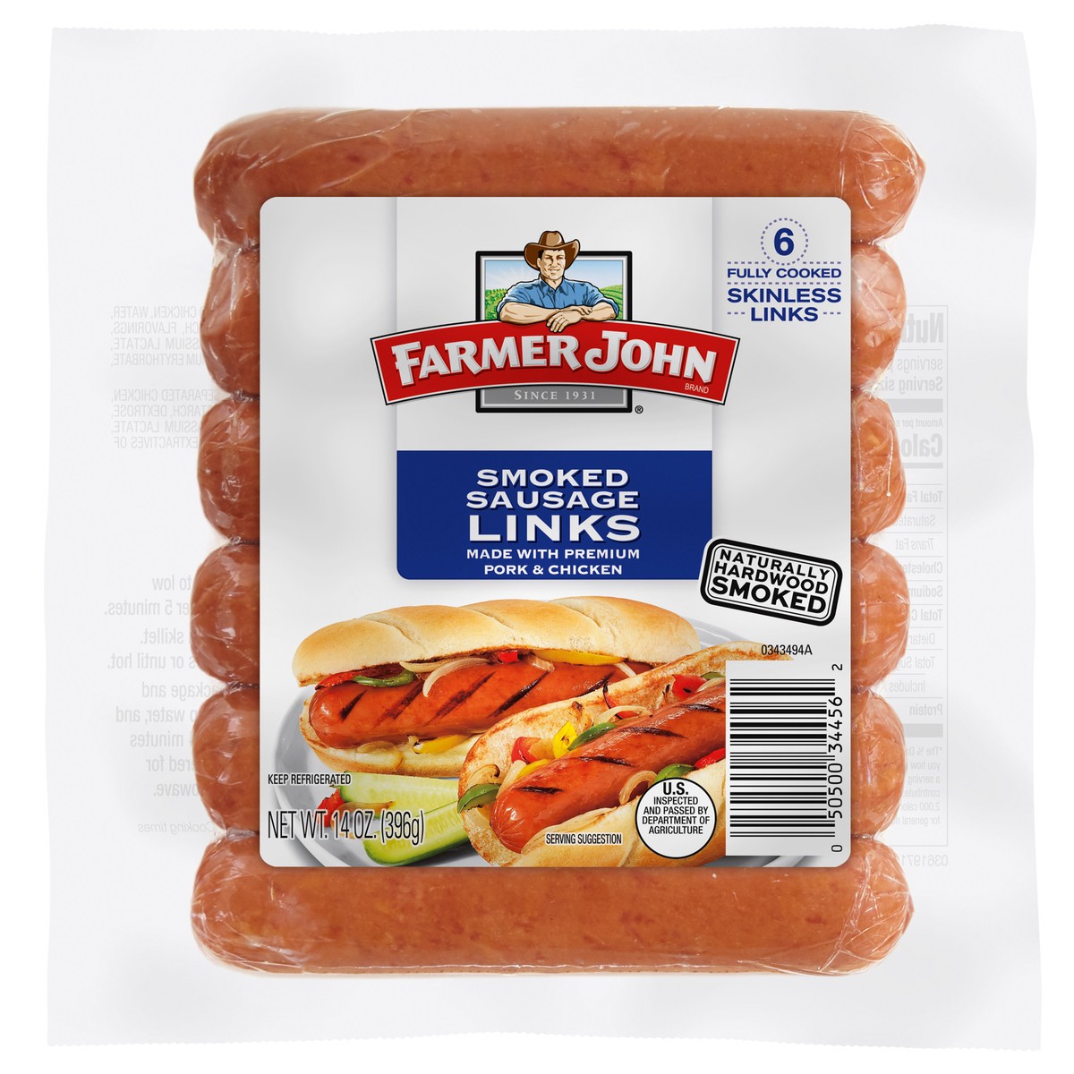 Made with pork, turkey & beef. New. Since 1931. Fully cooked. Naturally hardwood smoked. U.S. inspected and passed by Department of Agriculture. farmerjohn.com. Questions or comments? Call 1-855-411-7…