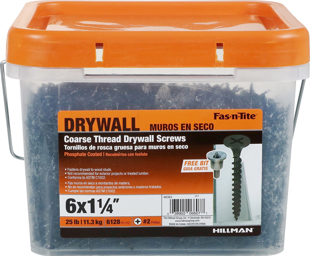 6,125 pieces per package. For use with drywall in interior applications. Fine tipped screw and bugle head for a clean finish. Coarse threaded black phosphate screws. Phosphate coated for improved pain…
