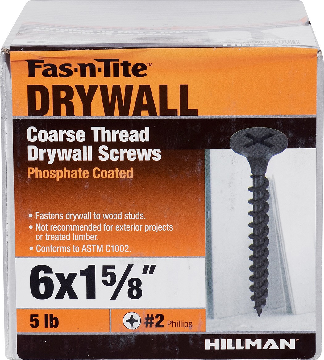 950 pieces per package. For use with drywall in interior applications. Fine tipped screw and bugle head for a clean finish. Coarse threaded black phosphate screws. Phosphate coated for improved paint …
