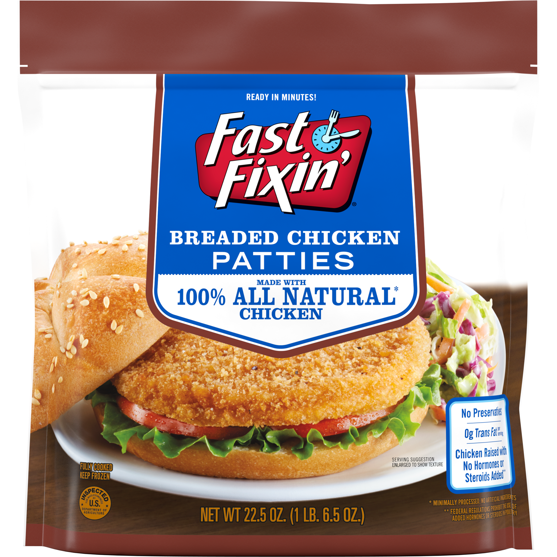 Enjoy a tasty meal ready in minutes with Fast Fixin' Frozen Chicken Breast Patties. Made with 100% natural* chicken breasts from chicken raised with no hormones or steroids added**, these chicken brea…