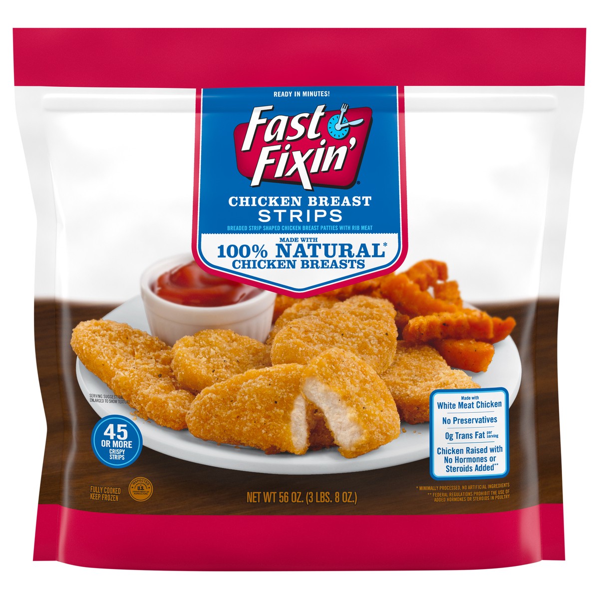 Enjoy a family favorite snack ready in minutes with Fast Fixin' Chicken Breast Strips. Made with 100% natural* chicken breasts from chicken raised with no hormones or steroids added**, these strip sha…