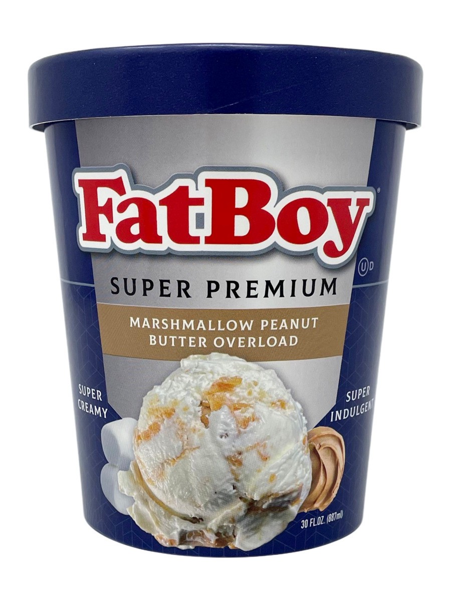 FatBoy Super premium marshmallow peanut butter overload ice cream. Super creamy. Super indulgent.