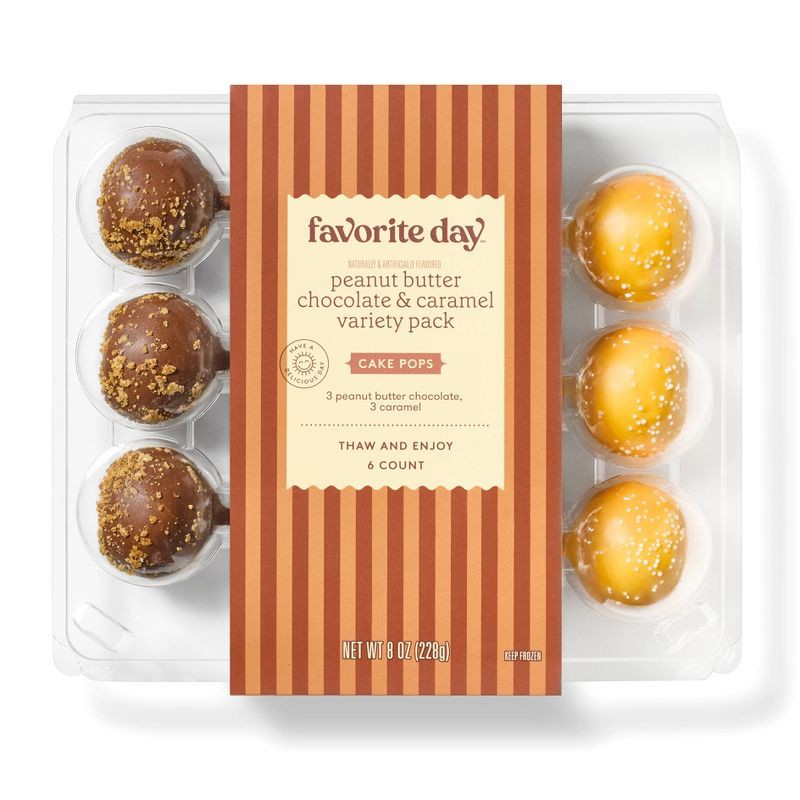This 6-Count Peanut Butter Chocolate & Caramel Cake Pop Variety Pack from Good & Gather™ packs classic cake deliciousness into a whimsical pop form. This pack comes with six cake pops — three peanut b…