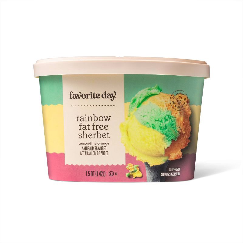 What's cool, refreshing and hits the spot? Fat Free Rainbow Sherbet from Favorite Day™, of course. This tub contains a variety of tangy, fruity flavor with your favorite fat free sherbet trio of lemon…