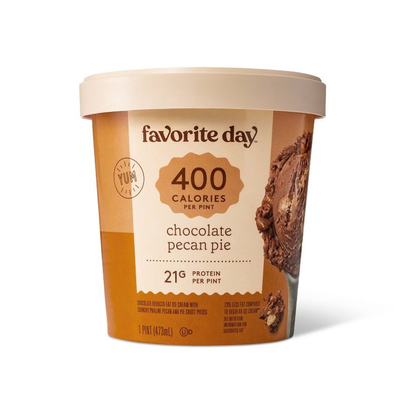 Enjoy a tasty treat whenever you're looking to add a little sweetness to your day with Reduced Fat Chocolate Pecan Pie Ice Cream from Favorite Day™. This delicious frozen pint combines chocolate reduc…