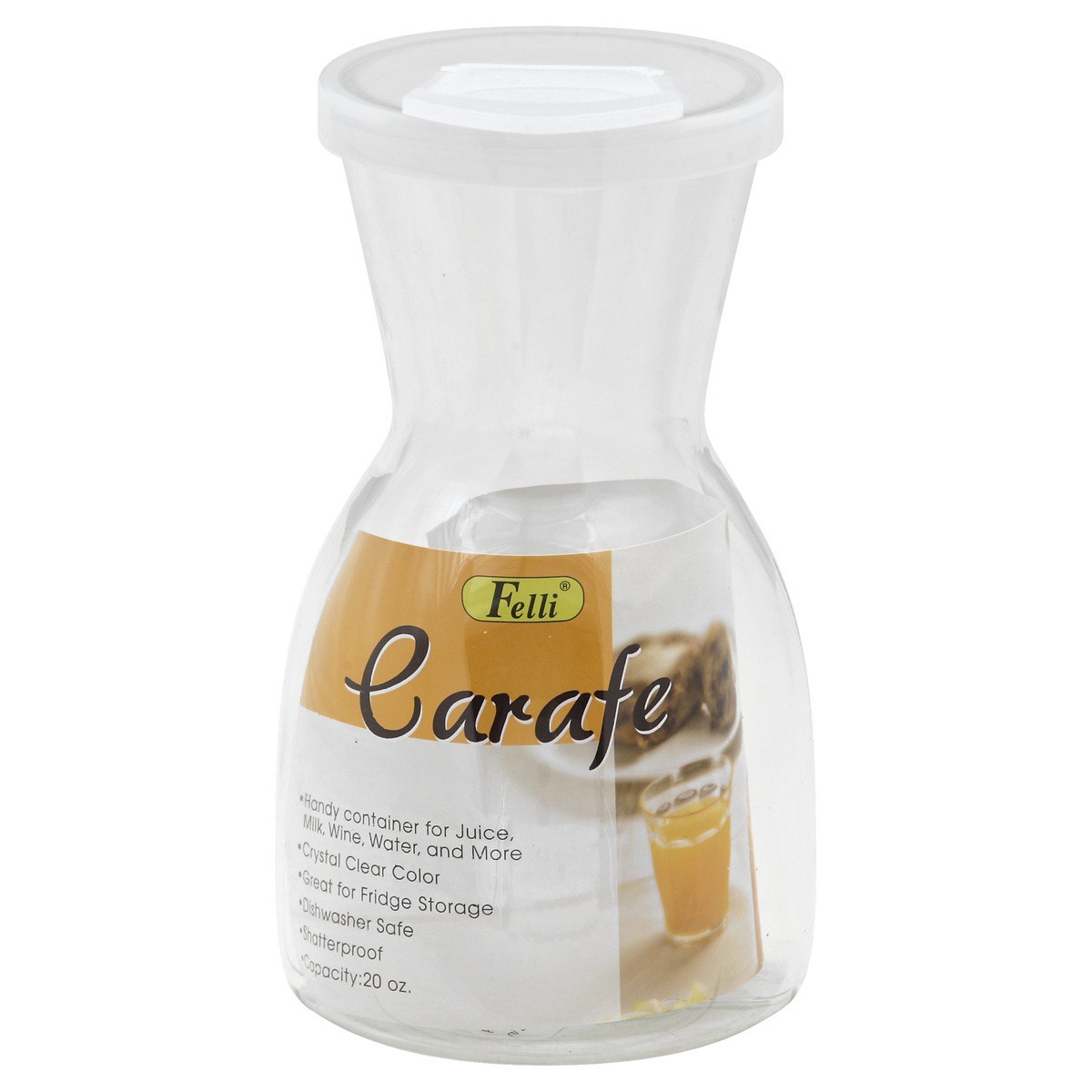 Handy container for juice, milk, wine, water, and more. Crystal clear color. Great for fridge storage. Dishwasher safe. Shatterproof. Capacity: 27 oz. Bisphenol A (BPA) free. Dishwasher safe top shelf…