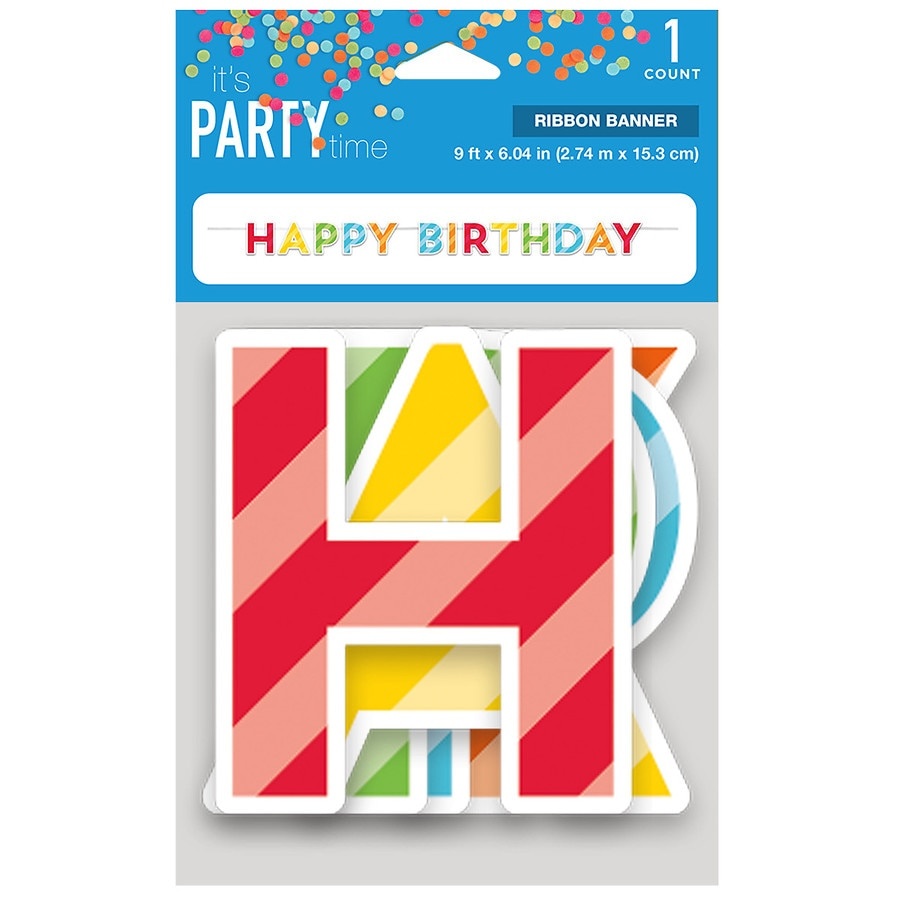 slide 1 of 1, Festive Voice Happy Birthday Stripes Ribbon Banner, 1 ct