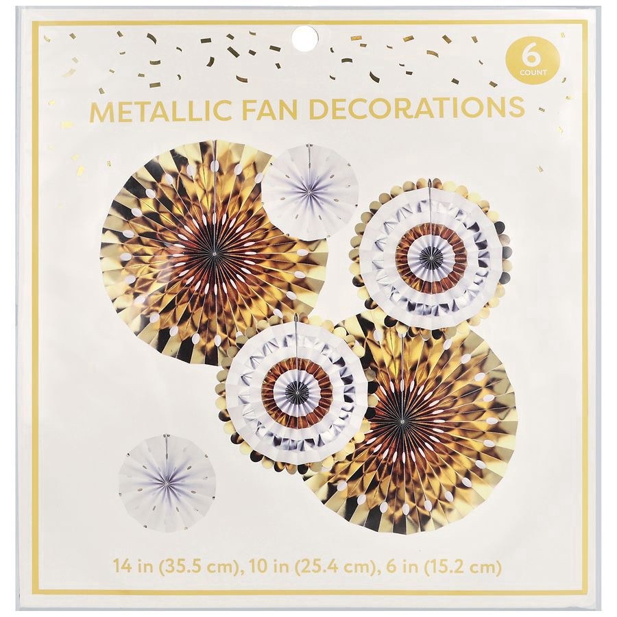 slide 5 of 5, Festive Voice Metallic Fan Decorations, 6 ct