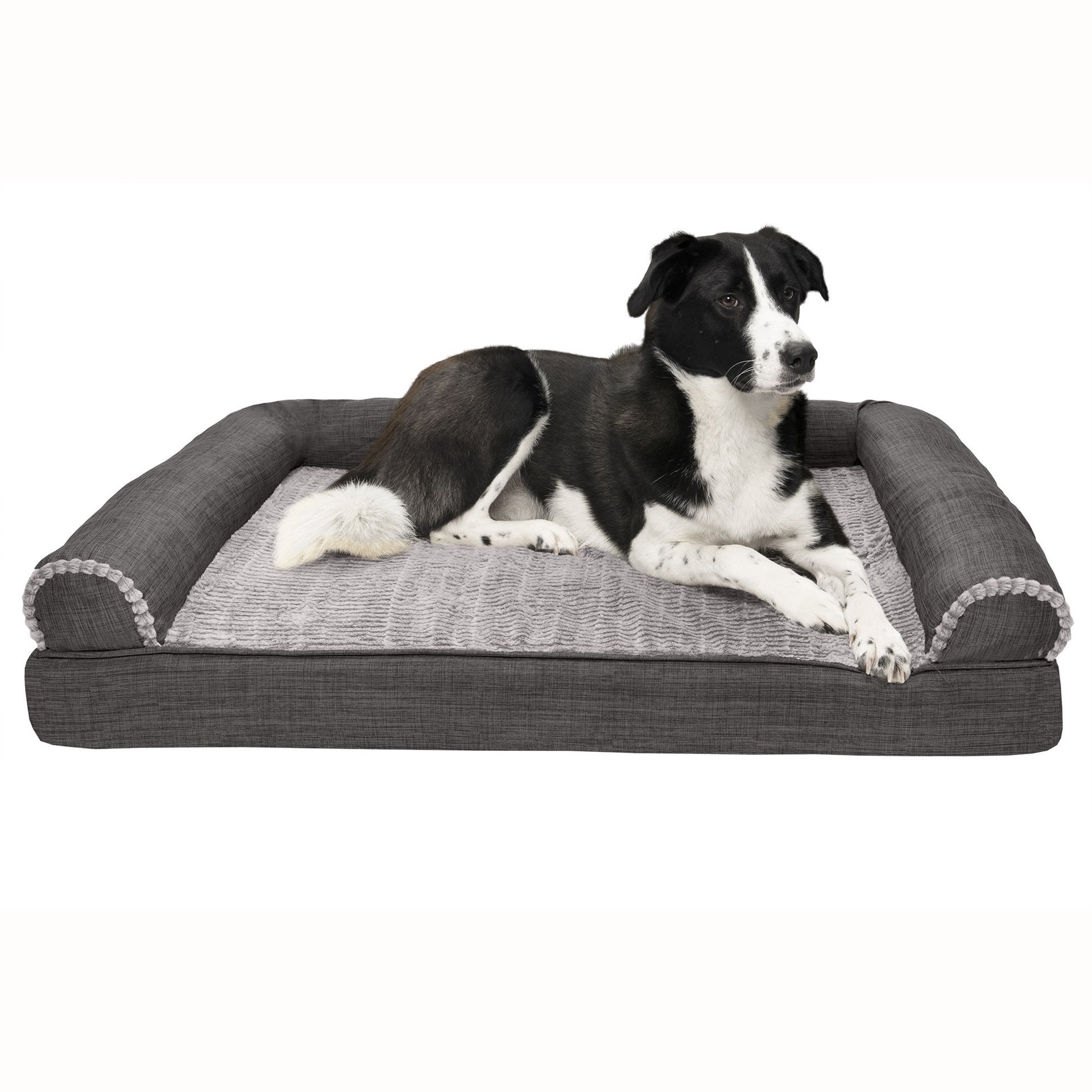 Perfect for pets of all ages, the Furhaven Luxe Faux Fur & Performance Linen Sofa Bed features a plush sleeping surface your pet will love! The foam core includes a memory foam topper infused with coo…