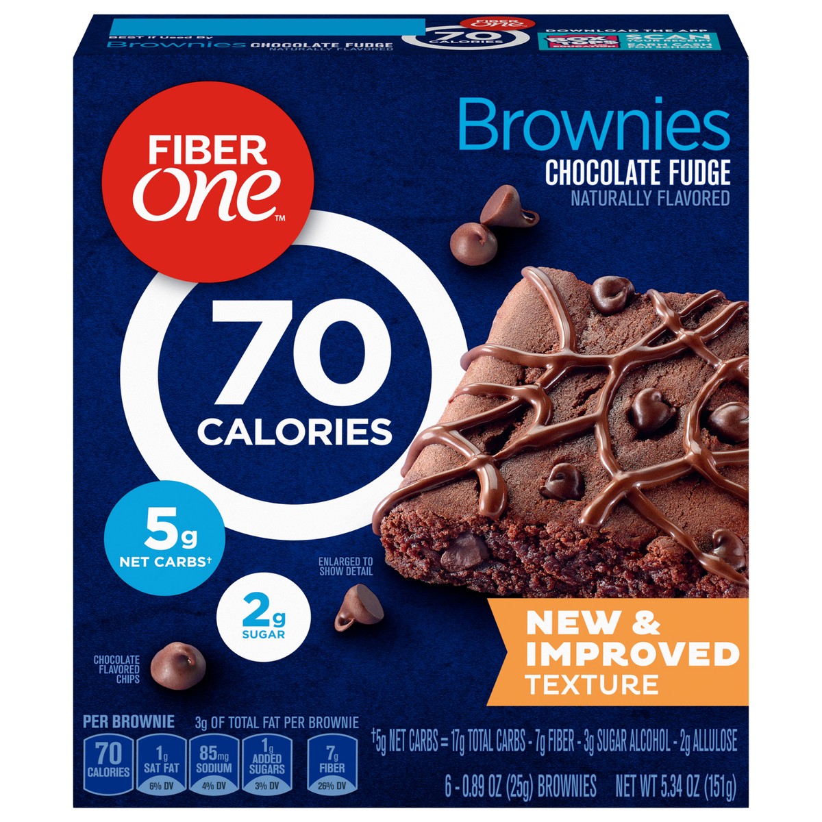 Don't compromise on great taste. Enjoy an indulgent moment without any of the guilt with Fiber One 70 Calorie Chocolate Fudge Brownies. These ready-to-eat bars have only 70 calories and two grams of s…