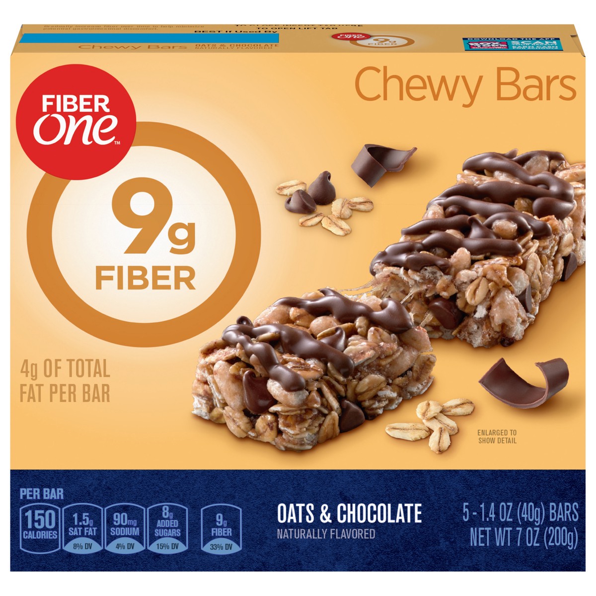 Fiber One Chewy Bars, Oats and Chocolate, Fiber Snacks, 5 Ct, 7 oz
