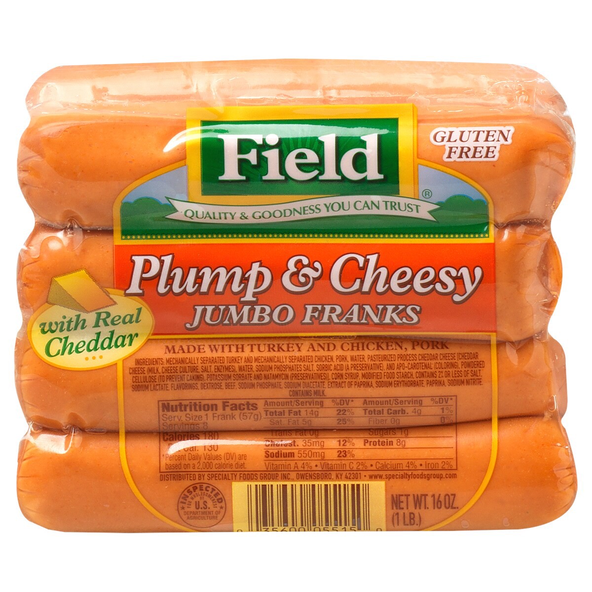 Field Jumbo Cheese Franks, 16 oz