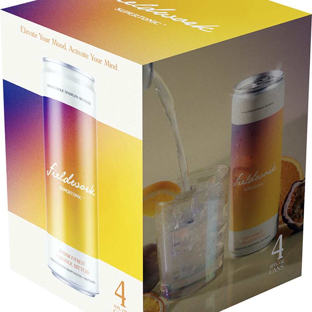 United States - California - Fieldwork Supertonic: Passionfruit + Orange Bitters is designed with adaptogens and nootropics to elevate your mood and activate your mind without the addition of alcohol.