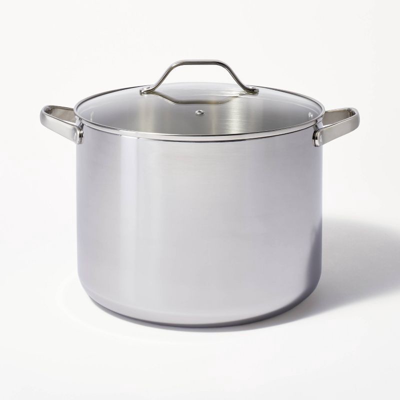 This 16-Quart Stainless Steel Stock Pot from Figmint™ is perfect for making large quantities of stock or soup. Made with an aluminum core fully surrounded by two layers of stainless steel for quick an…