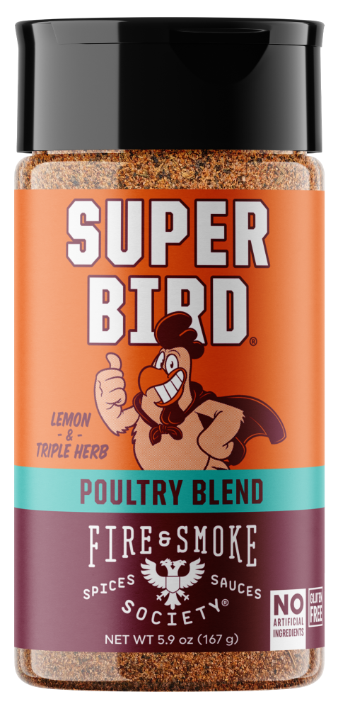 Be the king of your next barbecue with Fire And Smoke Society® Super Bird® Poultry Blend chicken and turkey seasoning. Super Bird® works wonders on whole birds and wings, in rubs and even on quail, gu…