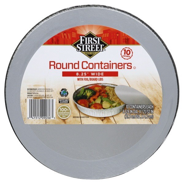 slide 1 of 1, First Street 8.25In Round Container W/Flat Lid, 10 ct