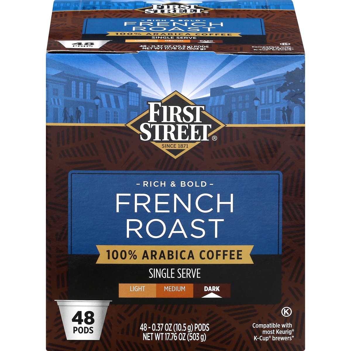 First Street Coffee 100% Arabica Dark French Roast Single Serve Pods - 48 ct, Bold morning brew. First Street Dark French Roast Coffee Pods deliver a deep, smoky flavor with a full body. Compatible wi…
