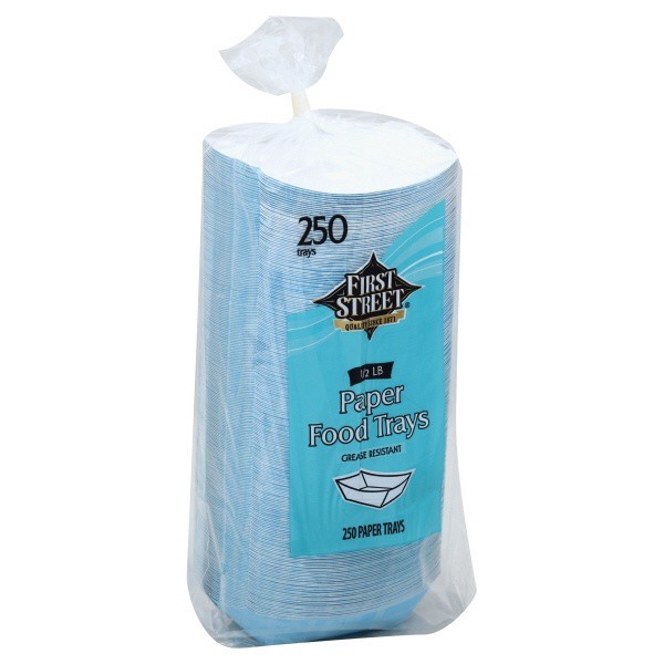 First Street Food Tray, Serve in style. First Street Food Trays are sturdy and disposable, perfect for serving hot dogs, nachos, or fries. Ideal for concession stands, picnics, and casual parties.